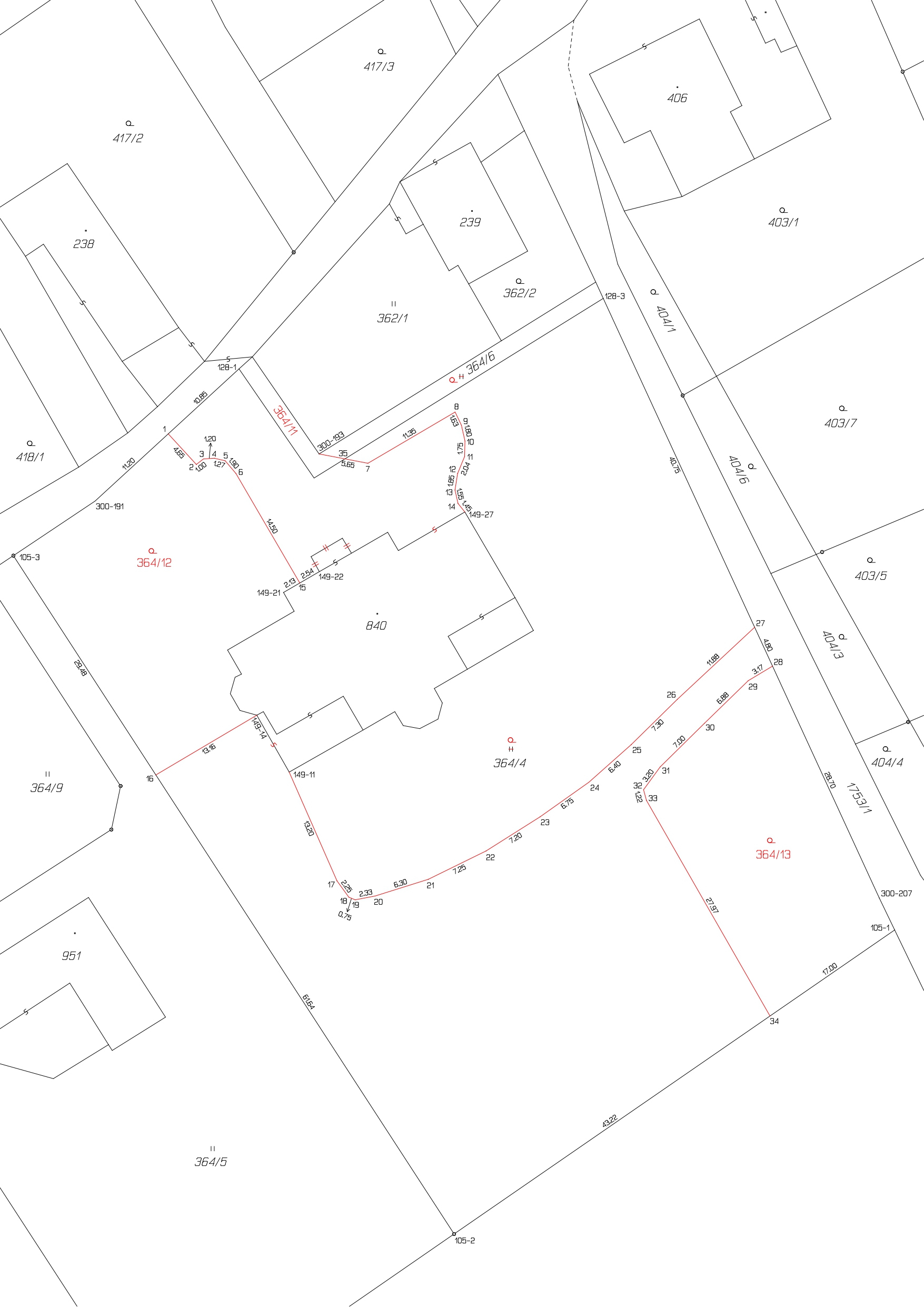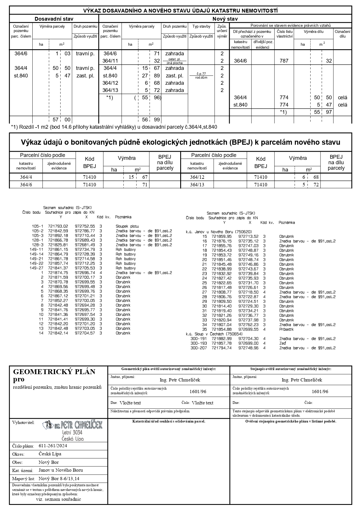 Geometrický plán vyhotovený v  rámci revize KN