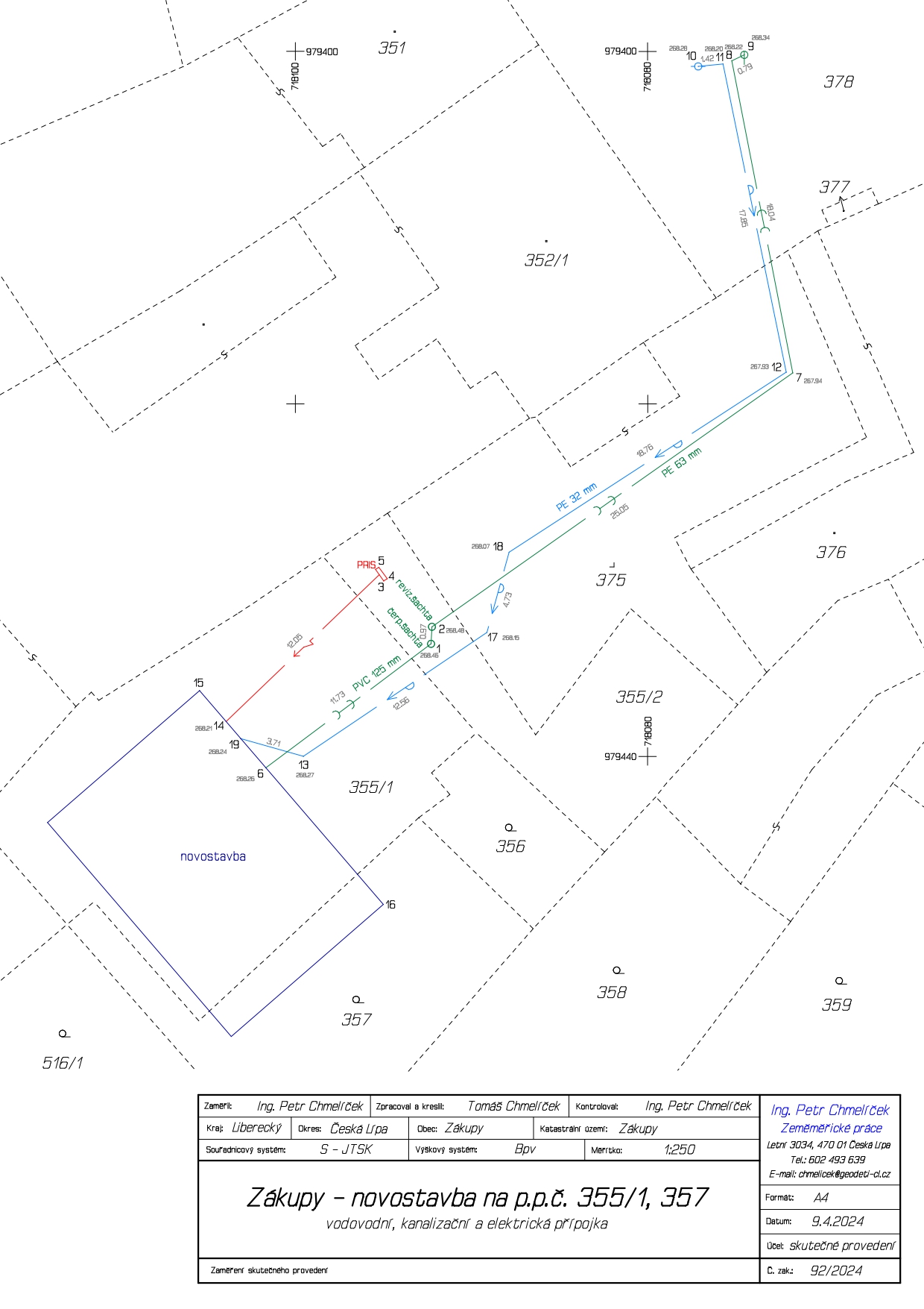 Zaměření skutečného provedení stavby a inženýrských sítí (nahrazeno GAD)